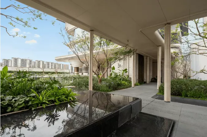 杭序府汲取杭州江南诗意精髓,寻源九溪烟树的自然与人文底蕴,以立体的社区底盘和城市溪谷的景观设计,建立多层多维的园林空间,尽得自然山水真意。