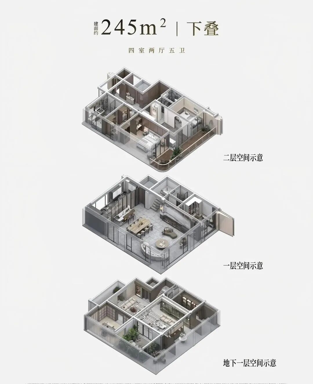 排屋区,户户大阳台、家家有庭院,纯正三层排屋,一座私享院落围合天地气韵;挑空大露台,举目天际视野,星河触手可及;创新地下空间最高约7m,谧藏诗意与野心——私家酒窖、星空影院、藏品陈列馆,皆可定制为家族的精神图腾。
