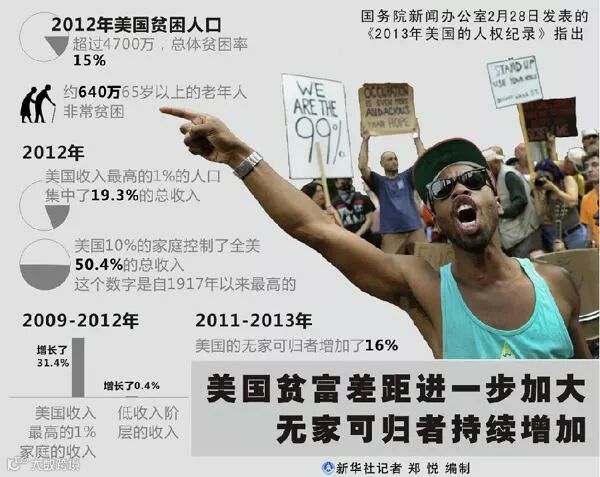 美国贫富差距进一步加大 图片来源:新华社