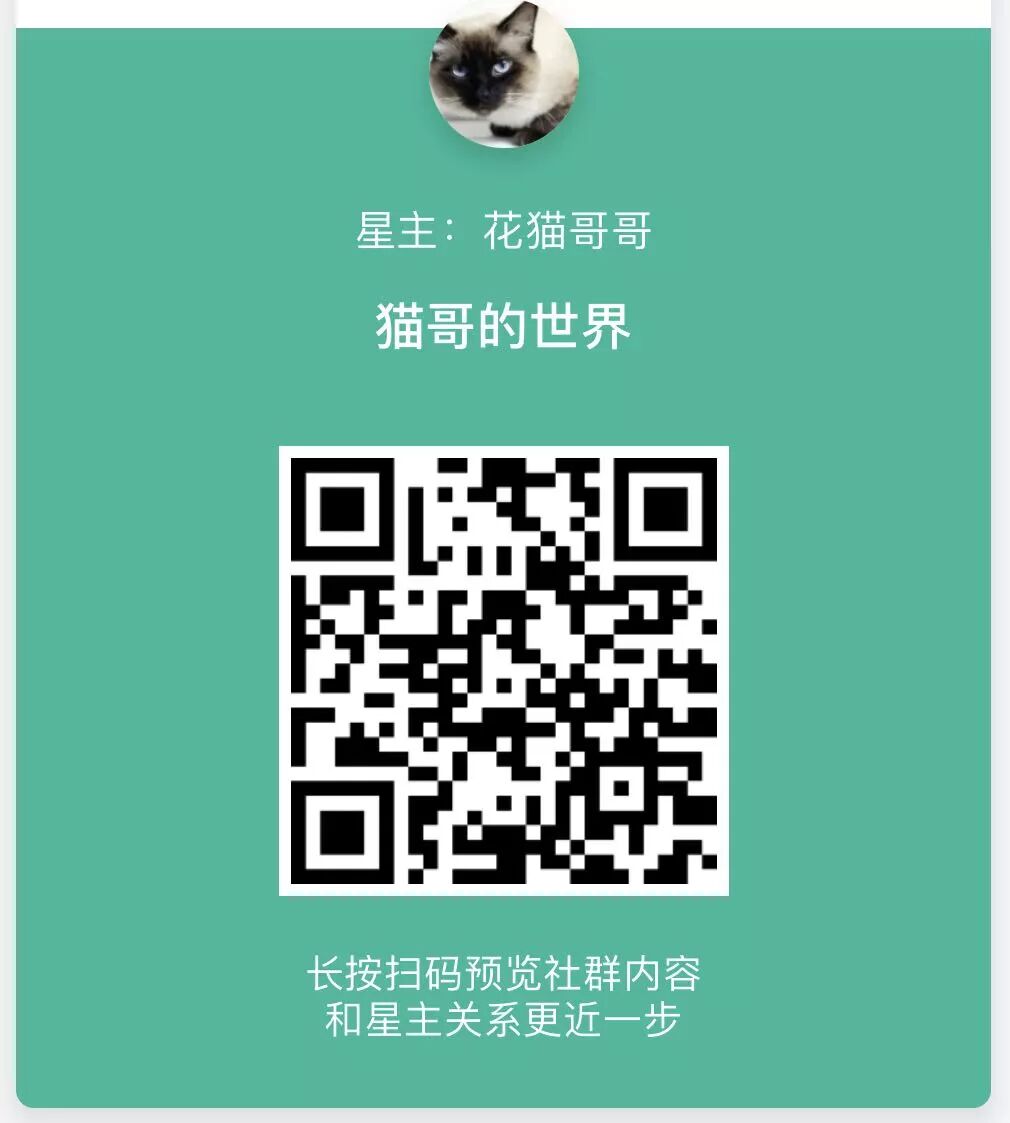 不愿加入知识星球的朋友可以关注我的公众号小号——《猫哥的世界》