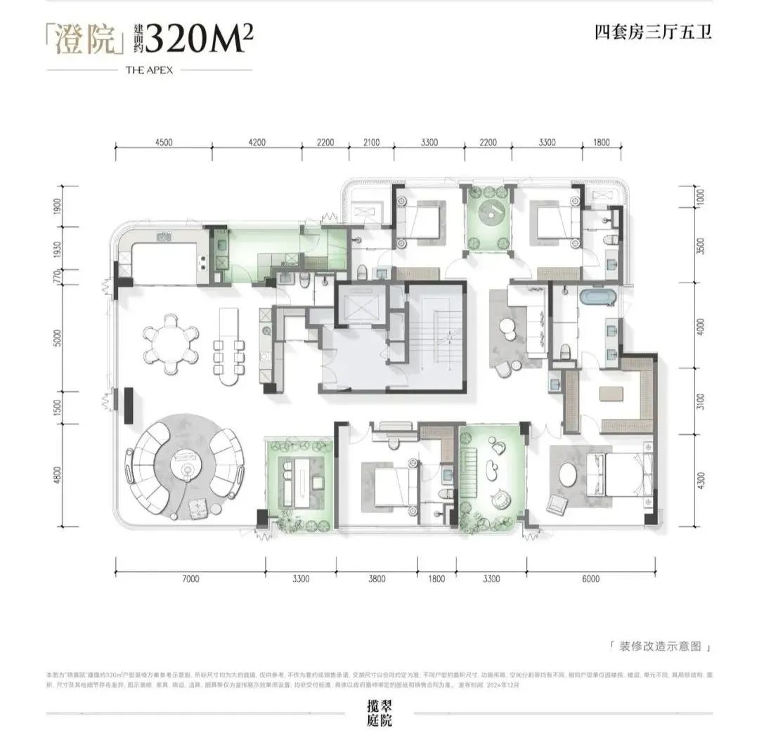 成都邦泰·悦九章约143㎡户型,做到了套四双套房三卫,惊喜的是层高约3.3米。