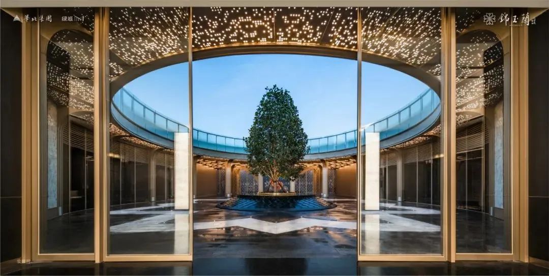 一进迎门启序,宽约32米、高约7.5米的礼序门庭,以海棠纹印鎏金铺陈,打造滤境式人文画境;