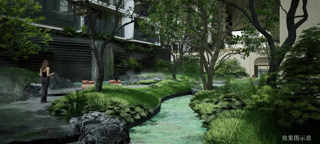 森居秘境体系:整体以双公园、一水院、一花院为景观布局,用无限场景力打造一座都市里的流动山谷