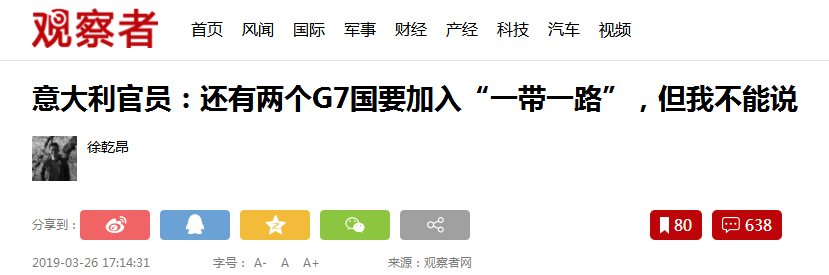 本来意大利作为第一个“吃螃蟹”的国家将面临G7内部很大的压力,但是意大利一招出卖队友的“乾坤大挪移”就让所有人的视线都转移到谁是“内鬼”上面,自己反而成了旁观者。至于G7内部已经是相互猜忌,现在谁还顾得上指责意大利?