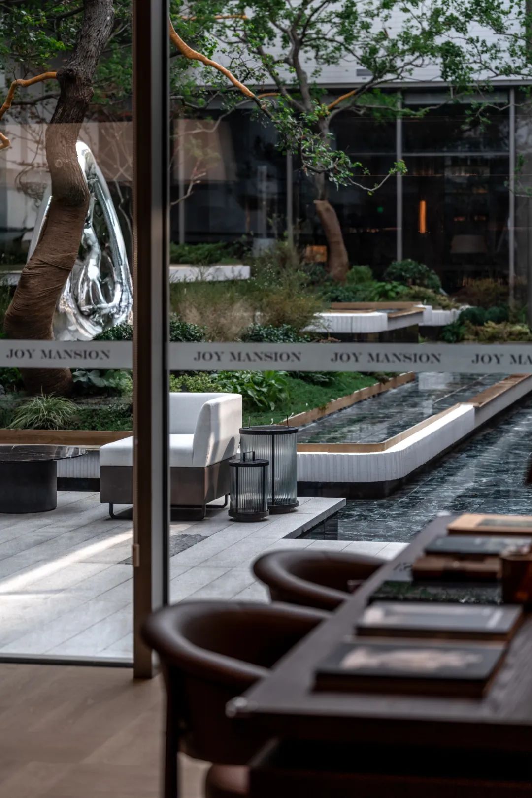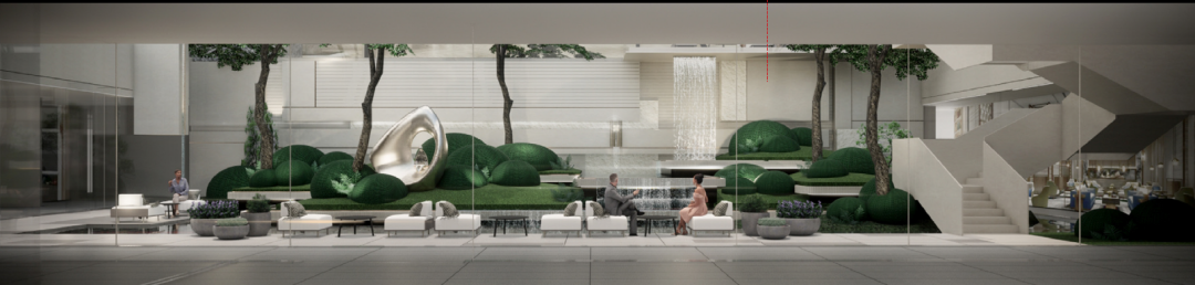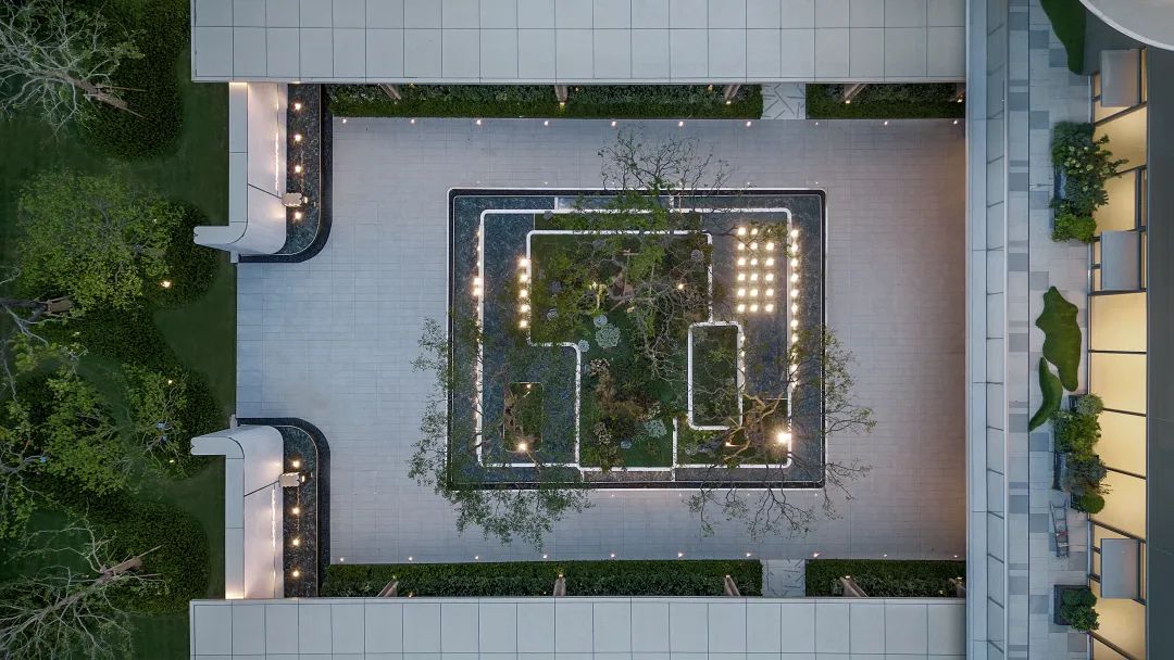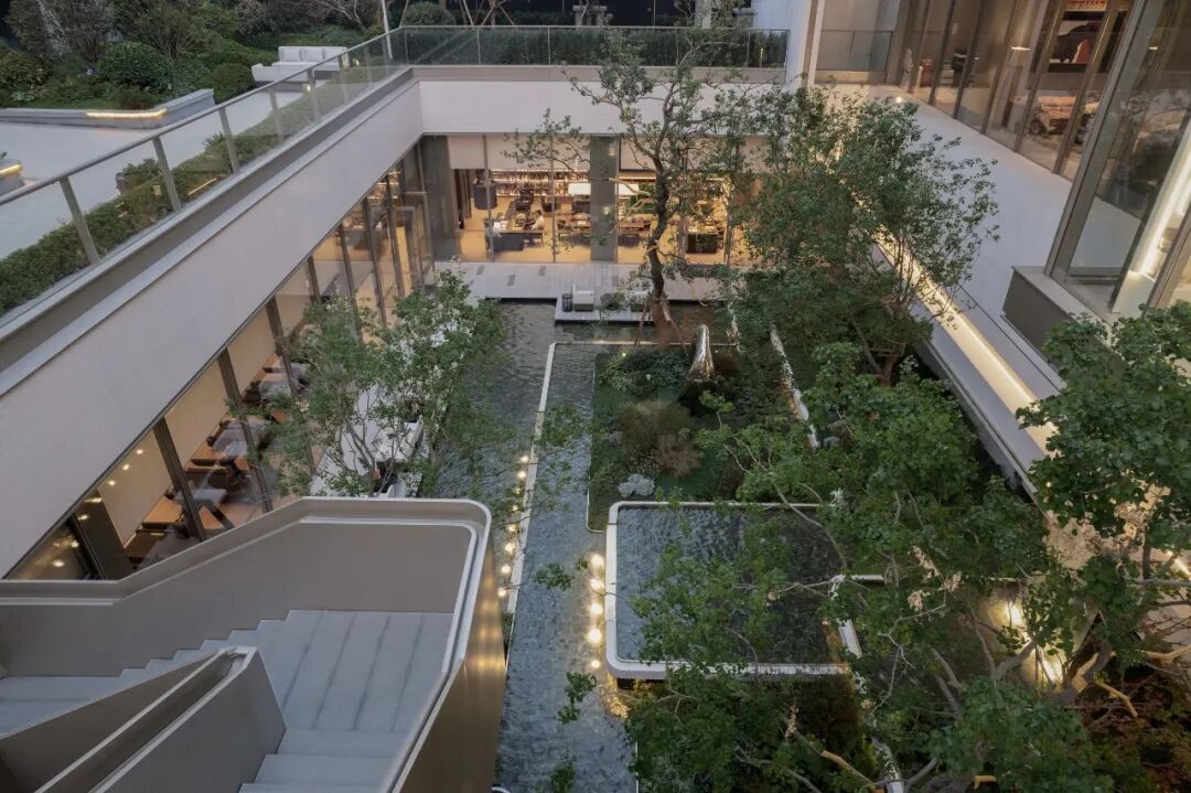 下沉花园的灵感来自山中久居的仙人之境,打造一个品茶观景、极具隐奢感的场所。