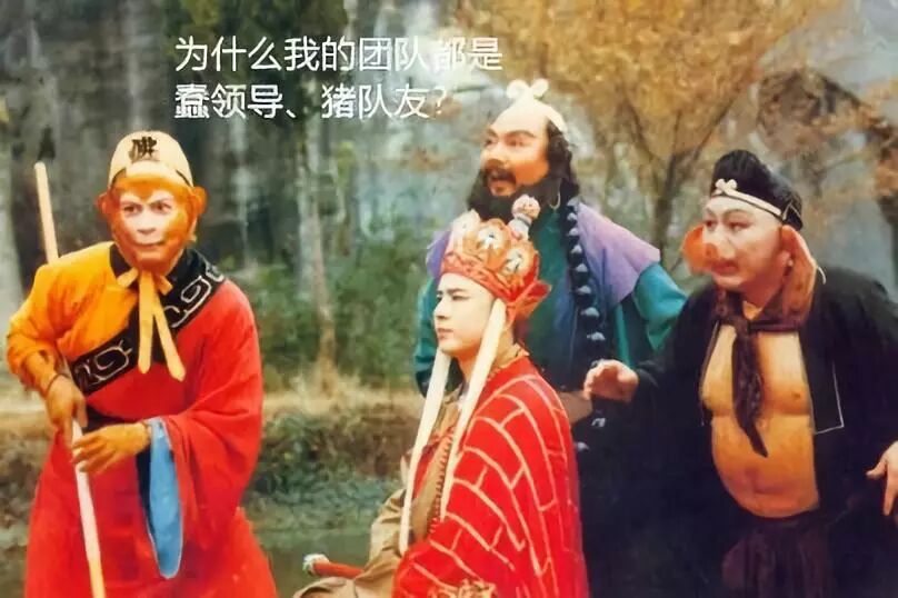 与此相反的是,书中取经团队对于孙悟空不仅没有任何帮助,反倒是处处掣肘。领导唐僧什么活都不会干,只会念紧箍咒——除了是累赘,而且大部分决策还是错的。队友都是猪队友,任何时候也指望不上有什么帮助。