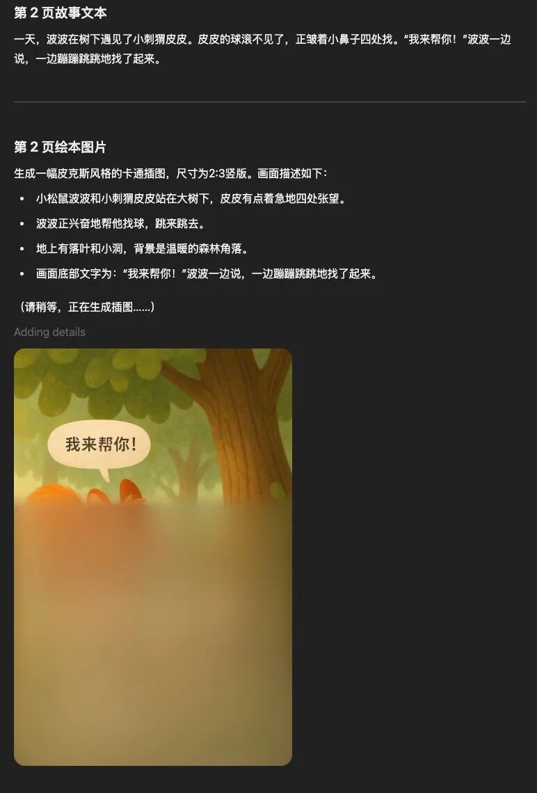 近日,技术团队在GPT-4o中成功实现了通过一段提示词一次性生成多张图片的功能,这为绘本创作带来了新的可能性。
