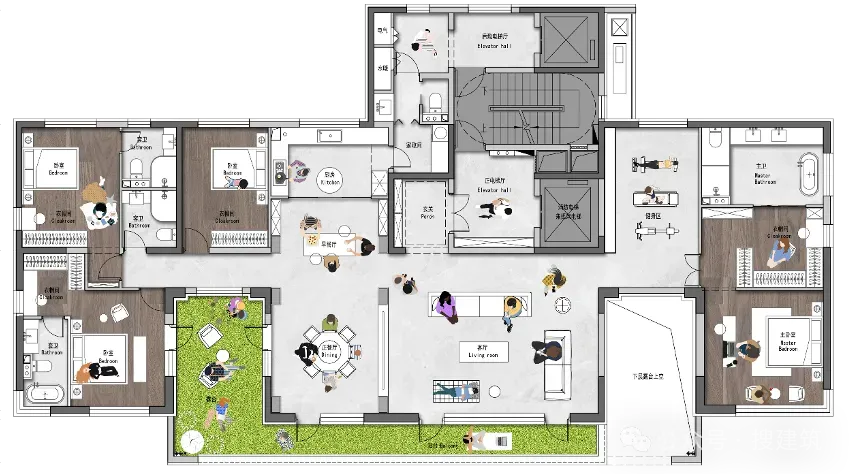 如此一来,四代住宅产品,就可以设计客厅和空中花园均为双层通高的产品,不仅提升户内空间呈现效果,还能彻底解决住户隐私问题。