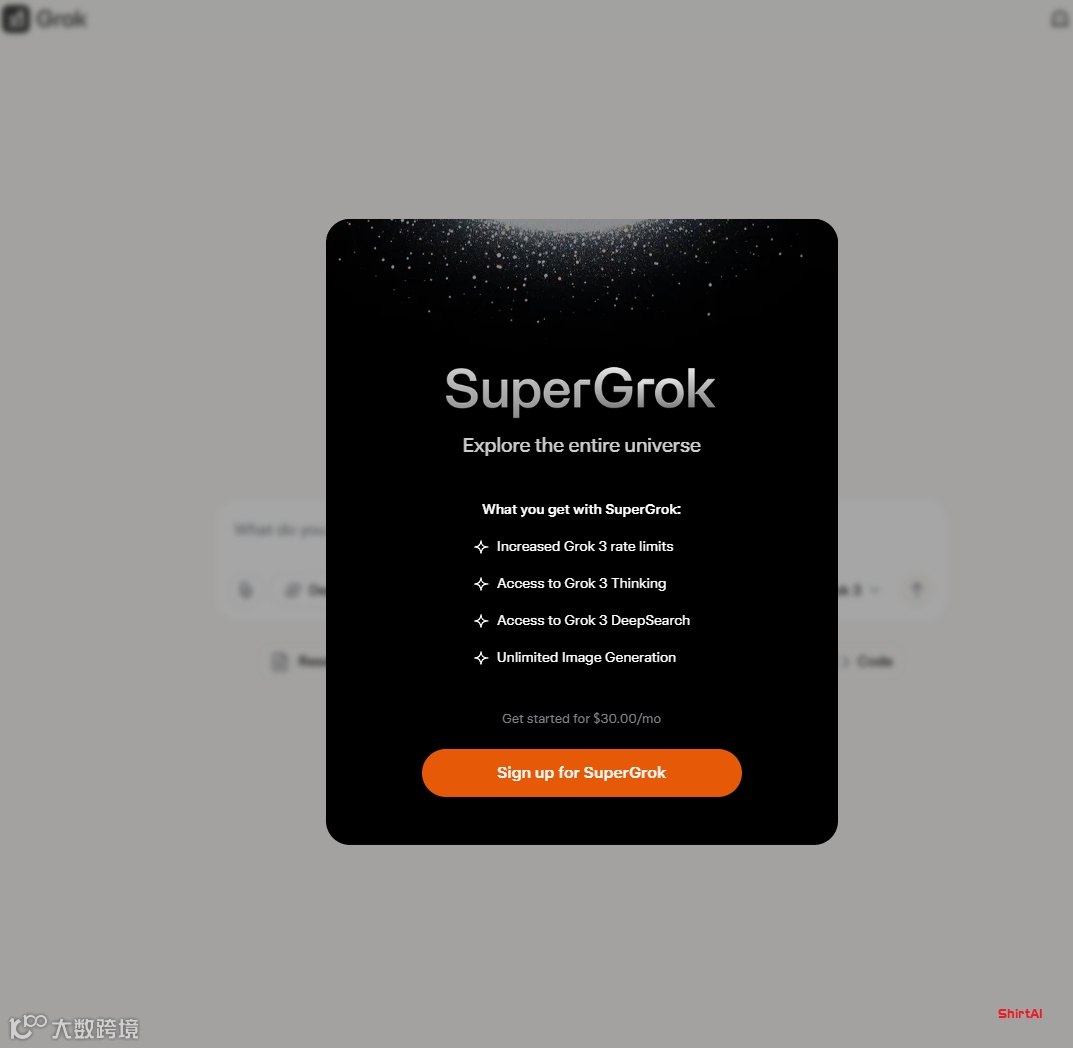 Super账户(30美元):与X平台的Premium+订阅(目前40美元)不同,SuperGrok是独立的Grok3订阅,价格更具吸引力。