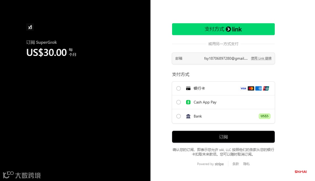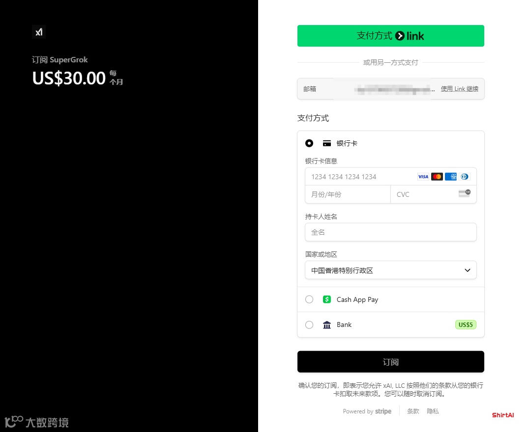 Super Grok 的费用是 30 $, 你通过支付宝给虚拟卡充值30美元即可,不需要额外多充值。