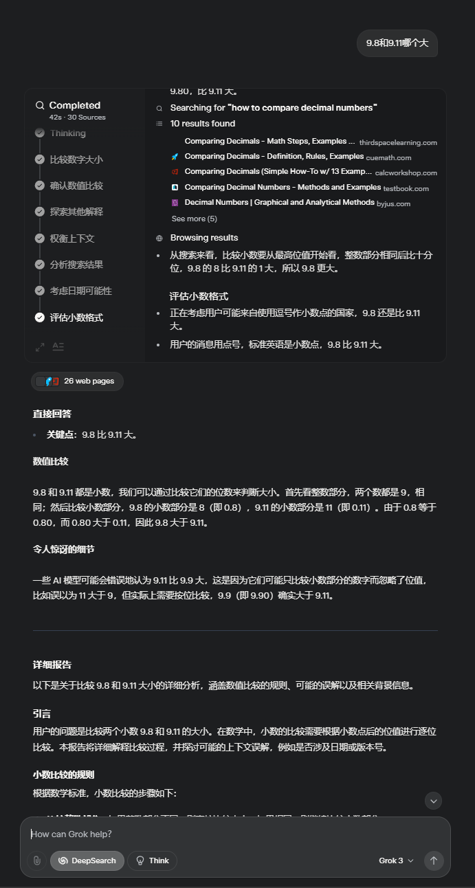 Think模式:Think模式启用复杂推理,消耗更多计算资源。普通账户有每日的使用次数限制为5次,具体数字未公开,但用户反馈显示免费账户的Think使用可能很快达到上限,导致提示“已达到速率限制”。