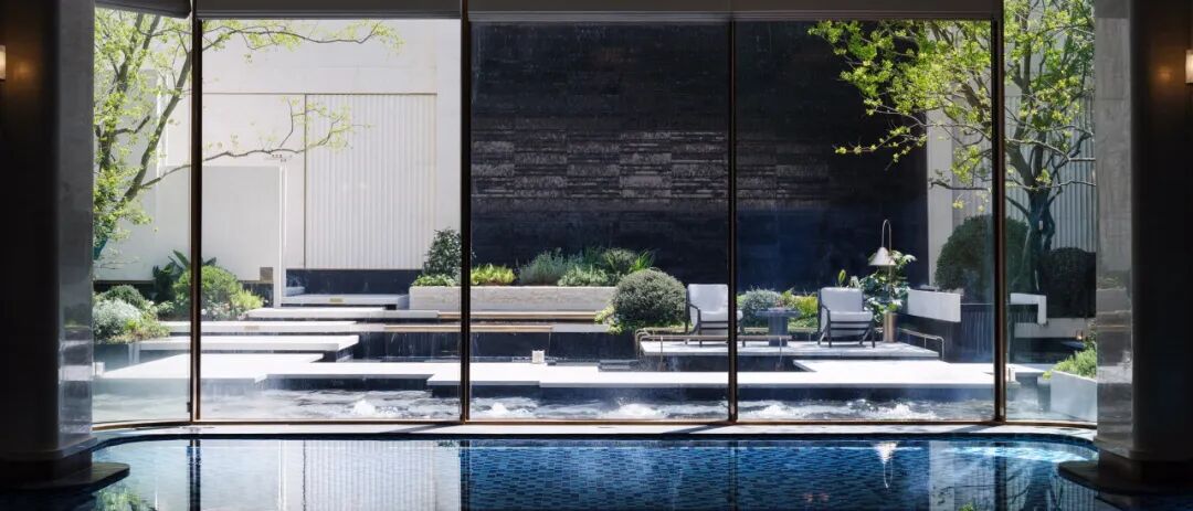 △负一层游泳池超白玻璃形成框景视野