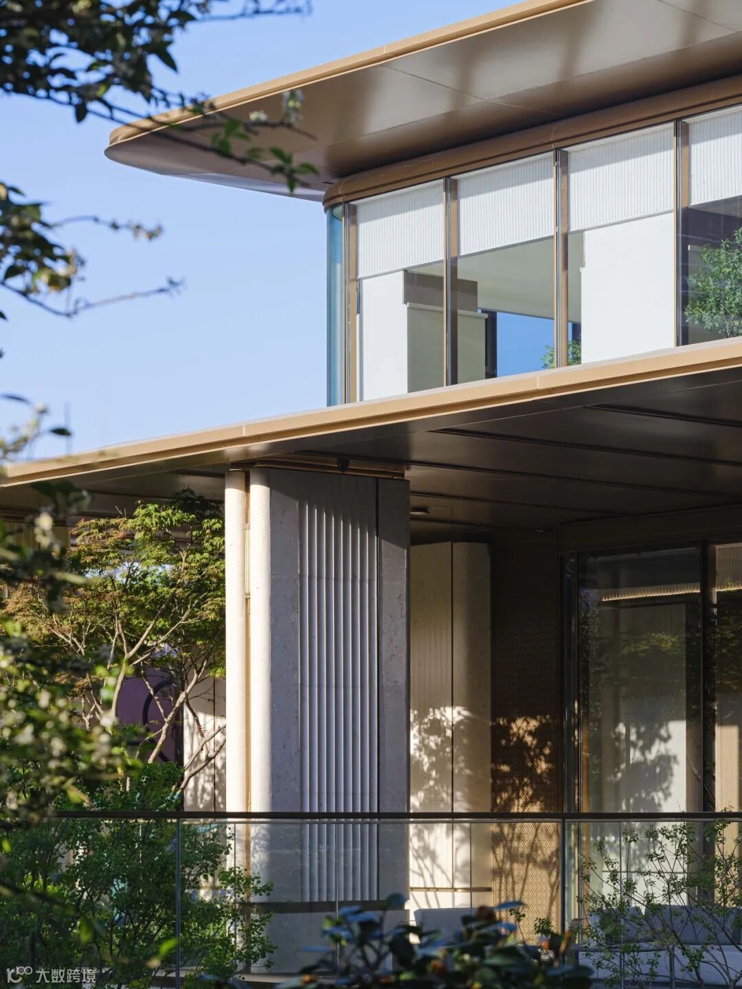 这些设计不仅柔化了建筑轮廓,带来友好温润的视觉感受,也有效引导人流、激发探索欲。从门头至内院,弧形石材赋予建筑稳重而不失温度的气质;弧形铝板以流畅线条展现轻盈动感;弧形玻璃盒子则在通透中界定私密边界,让光线自由穿梭;水纹玻璃则以细腻纹理传递宁静情绪,强化整体环境的柔和氛围。