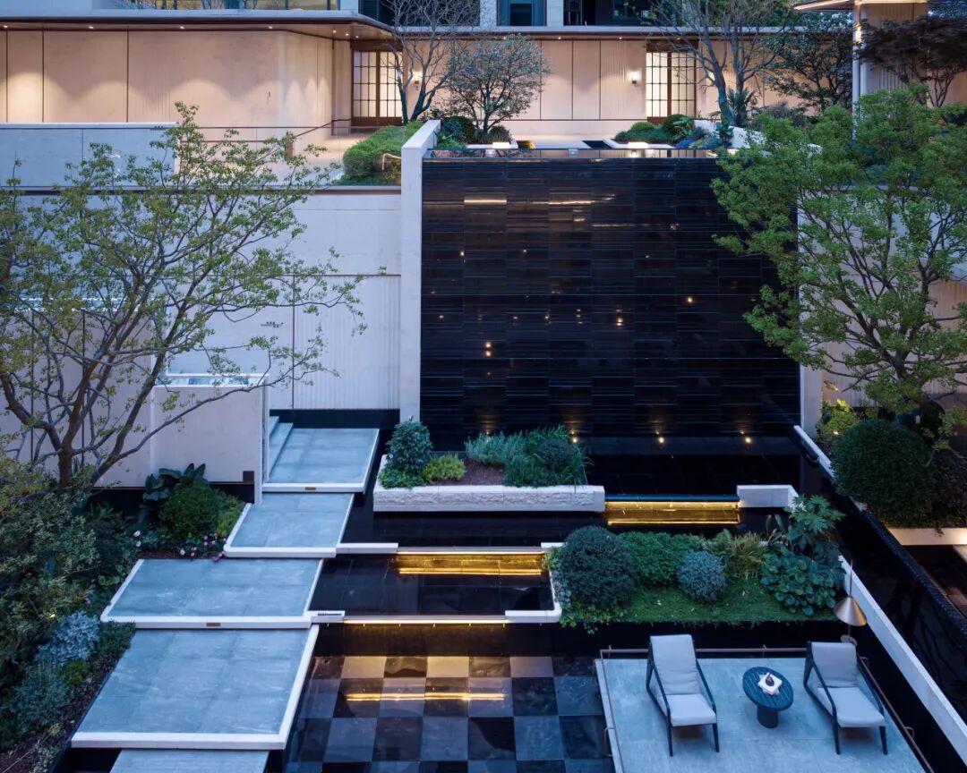 6米的立体复合庭院,利用舞台式悬挑看台与下沉庭院的结合,创造出层次分明又互动丰富的景观场景。凌空观景台将庭院化作露天剧场,绿植水景随光影流转自成生态舞台;隐逸式下沉庭院则以烛光星幕织就私享秘境,演绎池畔酒会的慵懒美学,昼夜场景在高低错落间完成度假叙事。