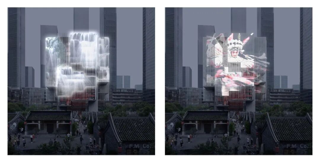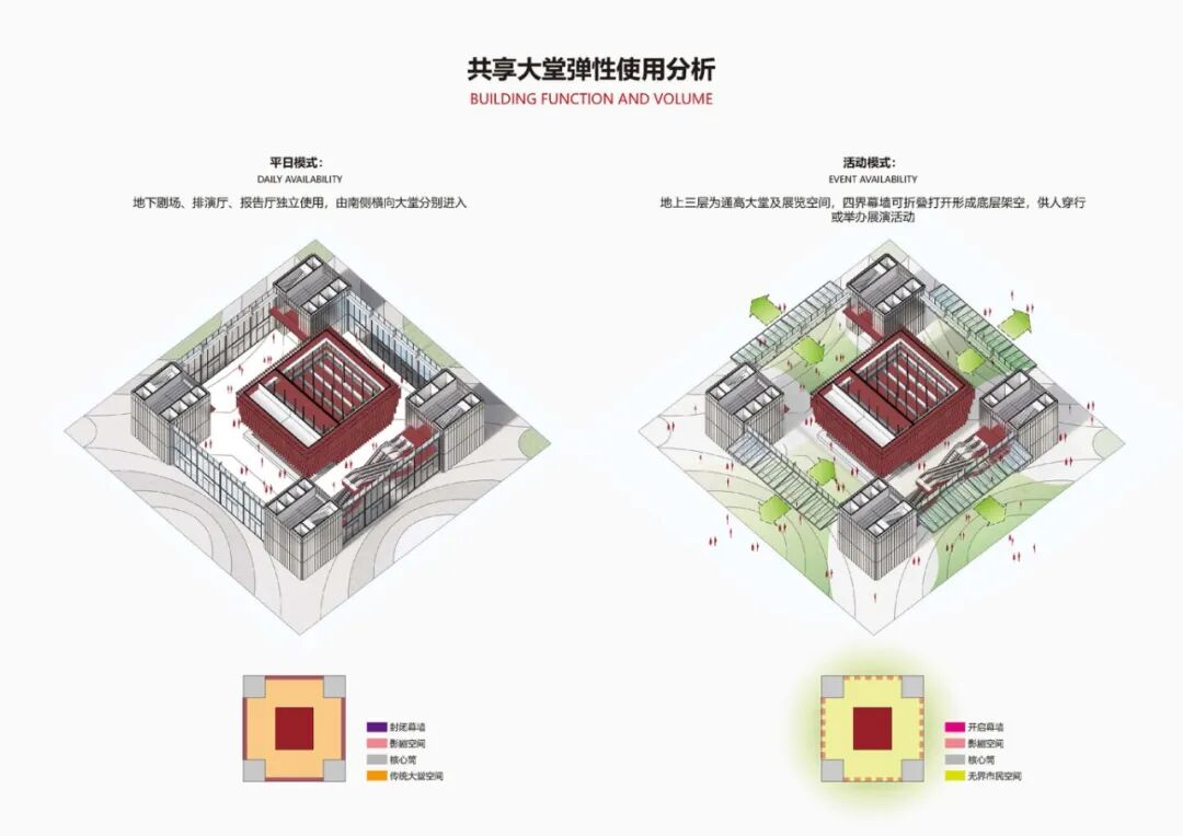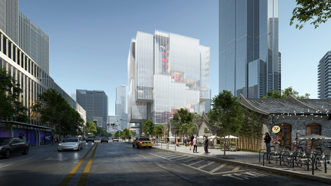 比如首层的大堂可以通过拉索幕墙的开闭,最大化释放地面公共空间,同时保留弹性运营管理的条件;与古村形成友好的近地空间界面。
