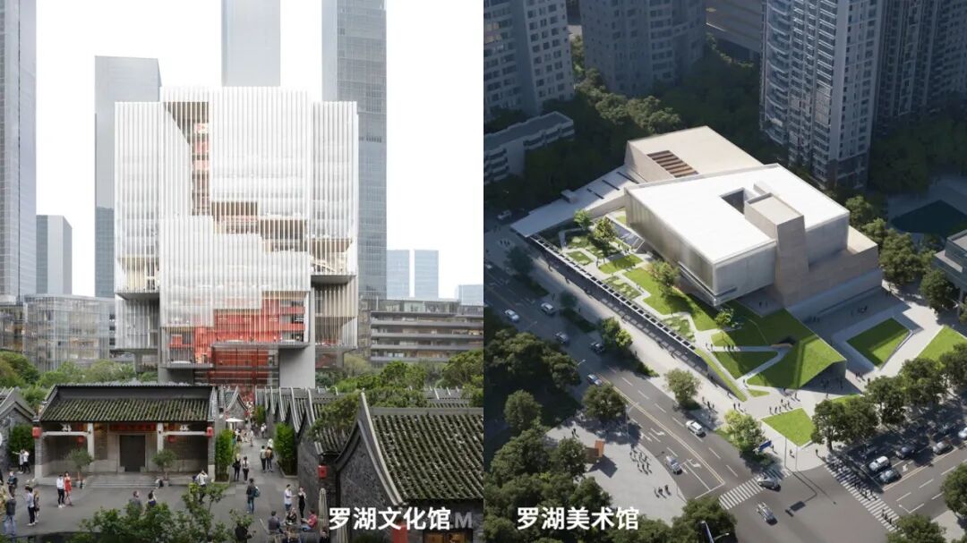 在2023-2024年度,罗湖区举办了两个重要的文化建筑竞赛,分别为罗湖区文化馆新建和罗湖美术馆改造竞赛。两馆以深南大道为界,南北对望。在两次竞赛中AUBE欧博设计均在专家评审环节进入前三名,成为中标候选单位。