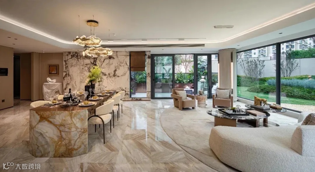 方厅圆台丨LDKG一体 约94㎡光瀑通厅 中岛家宴厅 双洄游动线