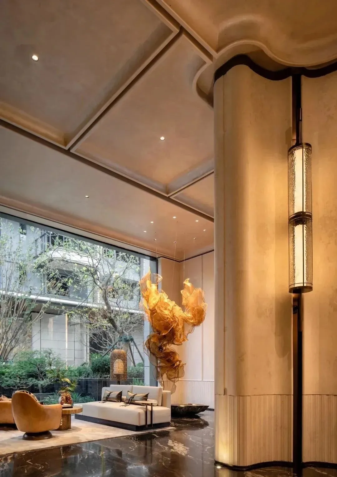 步入大堂,脚下是定制拼花大理石,头顶艺术吊灯洒下柔和光晕,搭配着舒缓的背景音乐,归家瞬间便卸下一身疲惫。