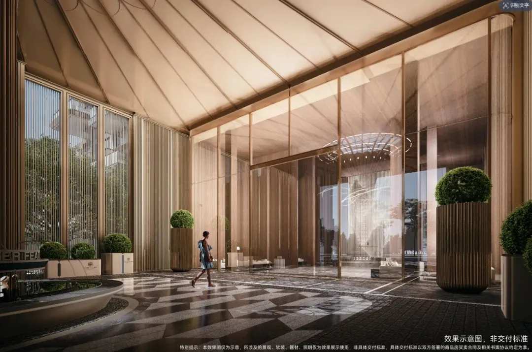40m奢阔社区入口门庭、首层精装大堂地上地下星级酒店式电梯厅等营造归家路上每一步的尊贵仪式感。