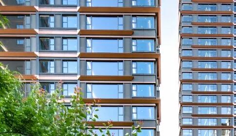 出于立面整体性的考虑,采用宽景落地窗及铝板幕墙的结合,实现外观的实用性和品质感双赢。强调层间简洁的线条,凸显极强的横向张力,避免过于稳重导致的呆板感,实现轻盈灵动,使建筑更贴合现代城市居住建筑美学。