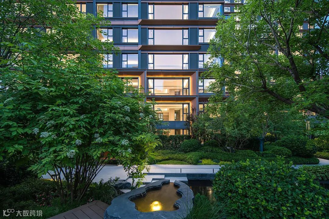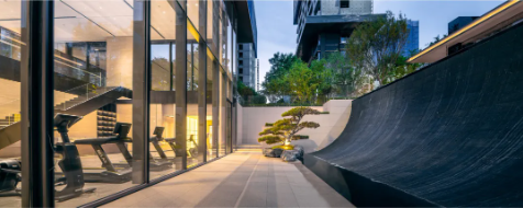 下沉庭院—建筑与景观融合设计,项目从社区入口大堂到归家单元门户,在建筑、景观、室内一体结合设计下,建立了高度融合的立体归家系统,让归家成为一次如度假般的缦系之旅。