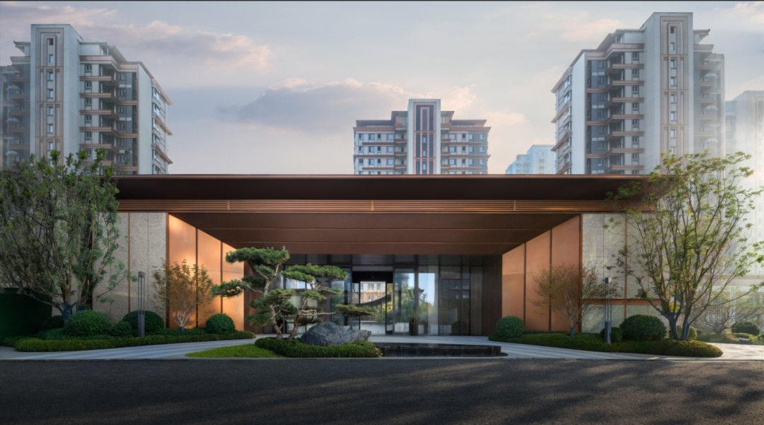 社区大堂大气庄重的对称建筑,以现代建筑材料呈现经典美学比例。设计的整合,为居住者在建筑、景观和室内的空间使用场景中,提供了更好的空间衔接。社区大堂将传统建筑飞檐与精致工艺相融合,营造低调奢华的府院气质。