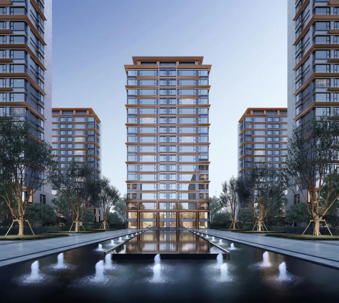 立面设计采取类公建手法打造的精工住宅,更具现代感、艺术感,通过顶部、中段、基层的线条关系来切分建筑整体比例,呈现建筑肌理的仪式感、韵律感。