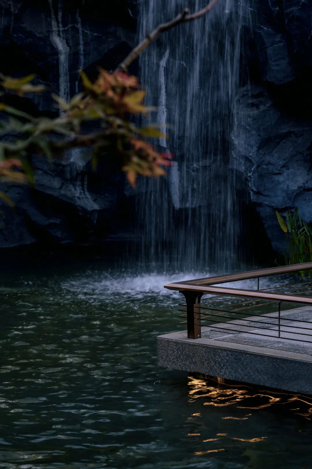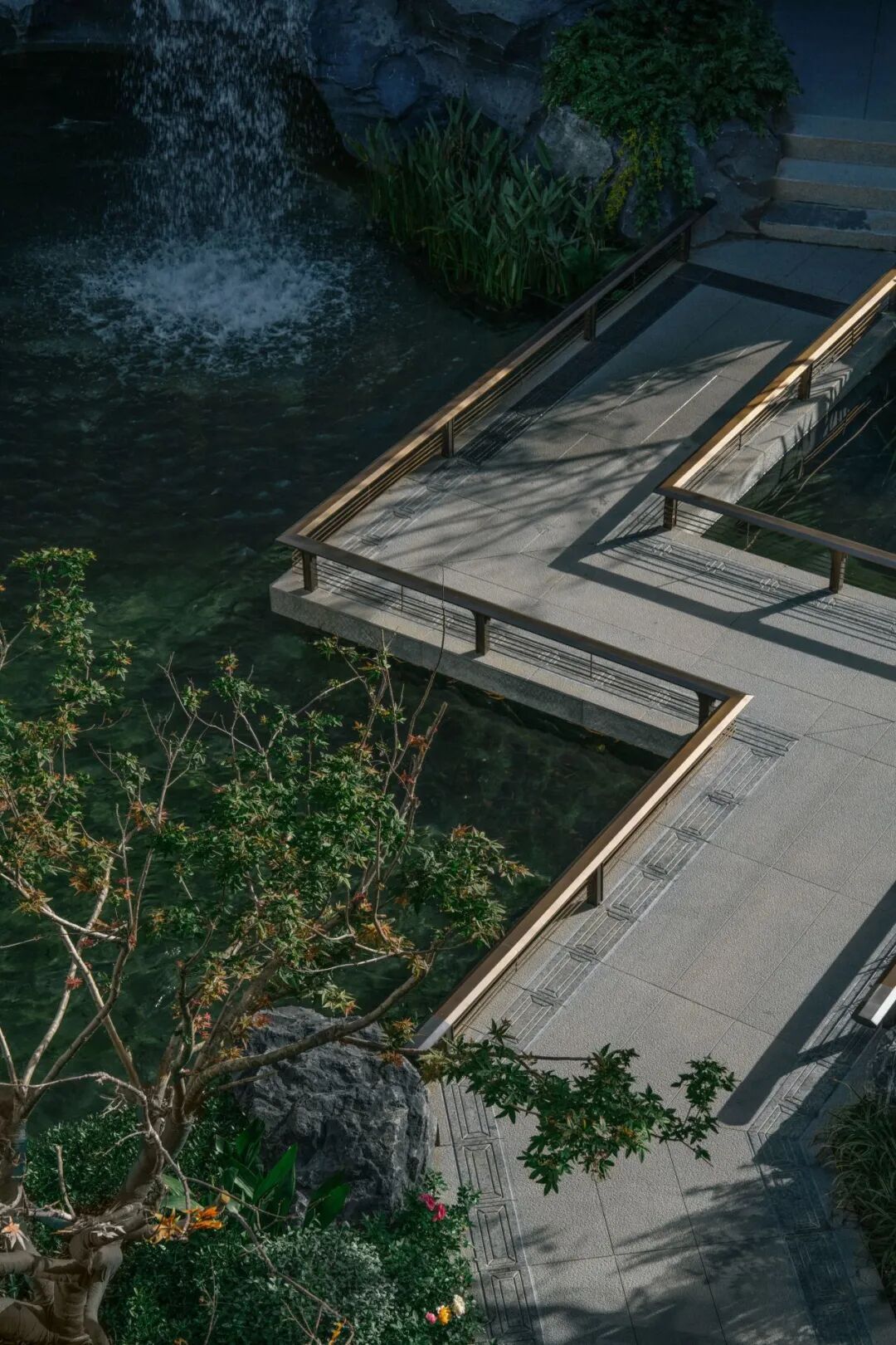 以“水”作为空间延续的纽带,打破常规游览动线,通过独具特色的下沉庭院在行进中探寻另一番天地,将展示区营造成如诗如画,仿若梦中的山林水院。在光谷这片科技新城中,我们为居者编织出一幅"大隐于市"的东方画卷。