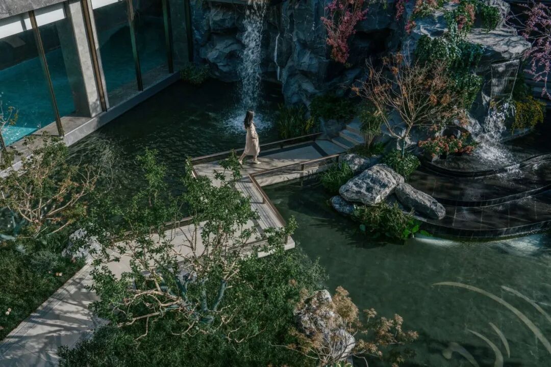 以“抚琴台”为场景标签,打造禅意高山流水、小桥流水潺潺的诗意景观。