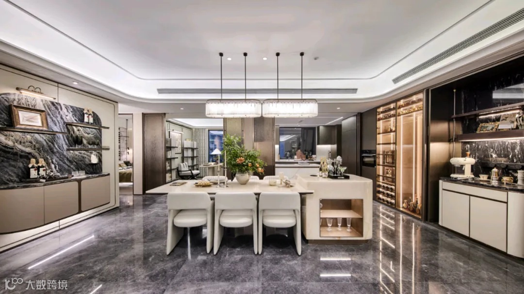 方厅圆台丨LDKG一体 约94㎡光瀑通厅 中岛家宴厅 双洄游动线