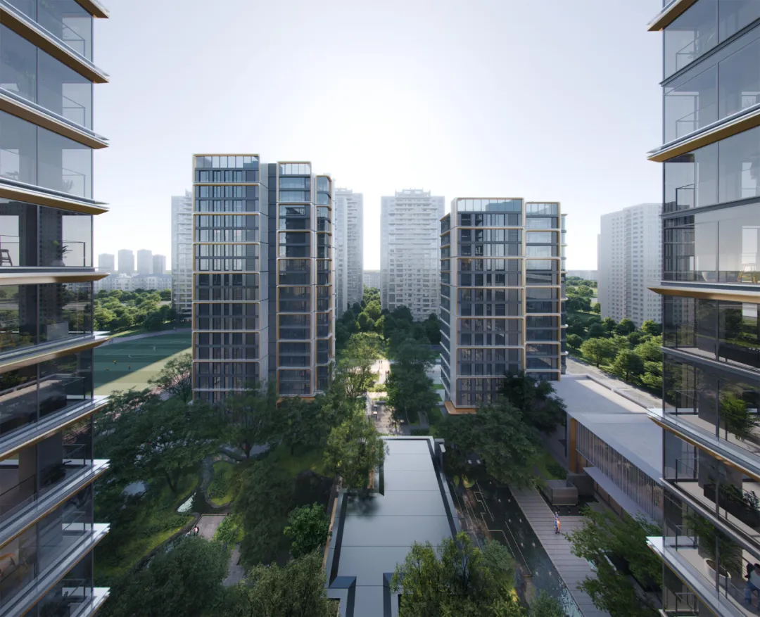 豫园秉持着“把每一套房子当成自己的房子来建”的原则,不惜花费2-3倍的投入成本,采用超高通透性的玻璃幕墙与质感太空铝板。这种选材不仅强化了立面视觉的轻盈感,更让整个建筑显得纤薄优雅、挺拔通透,完美地站在了国际舞台的聚光灯下。