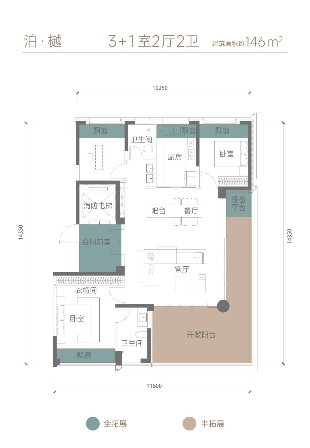 功能平权丨约57㎡全场景主卧套房+约19㎡女神衣厅 酒店化3套房