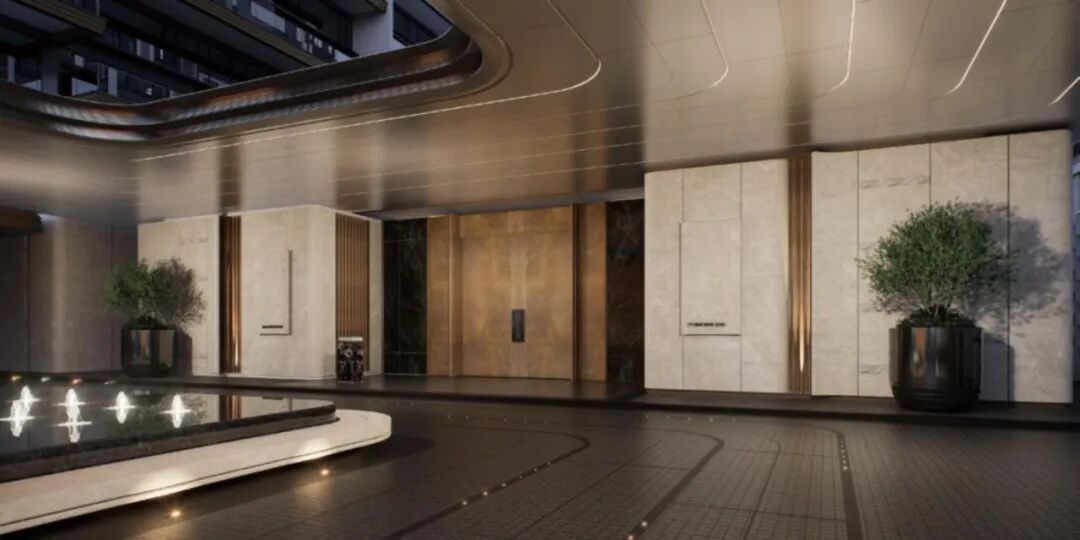 40m奢阔社区入口门庭、首层精装大堂地上地下星级酒店式电梯厅等营造归家路上每一步的尊贵仪式感。
