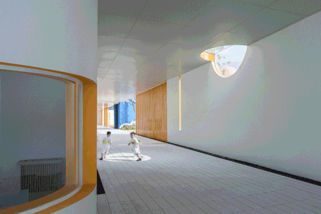 本项目为幼儿园大门入口。作为儿童逻辑的初始和幻想的萌芽,幼儿园应当注重周边环境对于儿童心理和行为的引导。白色的建筑立面散发着纯洁干净的气息,入口与窗口的粉色则赋予了整个空间天真烂漫的艺术氛围,激发孩子们在这里探索、撒野、创造。