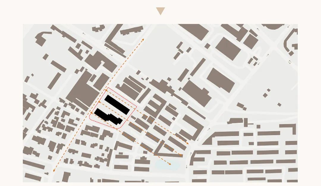 项目地处江湾历史文化风貌区,西侧市光路为三类风貌保护道路,项目以“传承与革新”为规划理念,融合“历史风貌与现代都市”城市特征为设计理念,尊重原有城市肌理,通过空间布局与片区规划融合、延续城市界面等规划手法对场地进行设计。