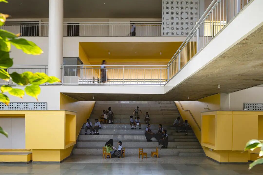 冷,当地的Kota石材,点缀着花岗岩,构成了大部分地板。铝制推拉门作为教室和庭院之间的分隔物。外院用当地的土门石完成。尽管在过去一万年的人类文明中,技术的进步使人类的经验越来越多地与这个星球上不受控制的生活方面分离开来,但人类仍然渴望甚至需要与自然建立联系。学校通过使用光、风、树木和体量,将学习体验与自然世界的模式和过程重新整合起来。