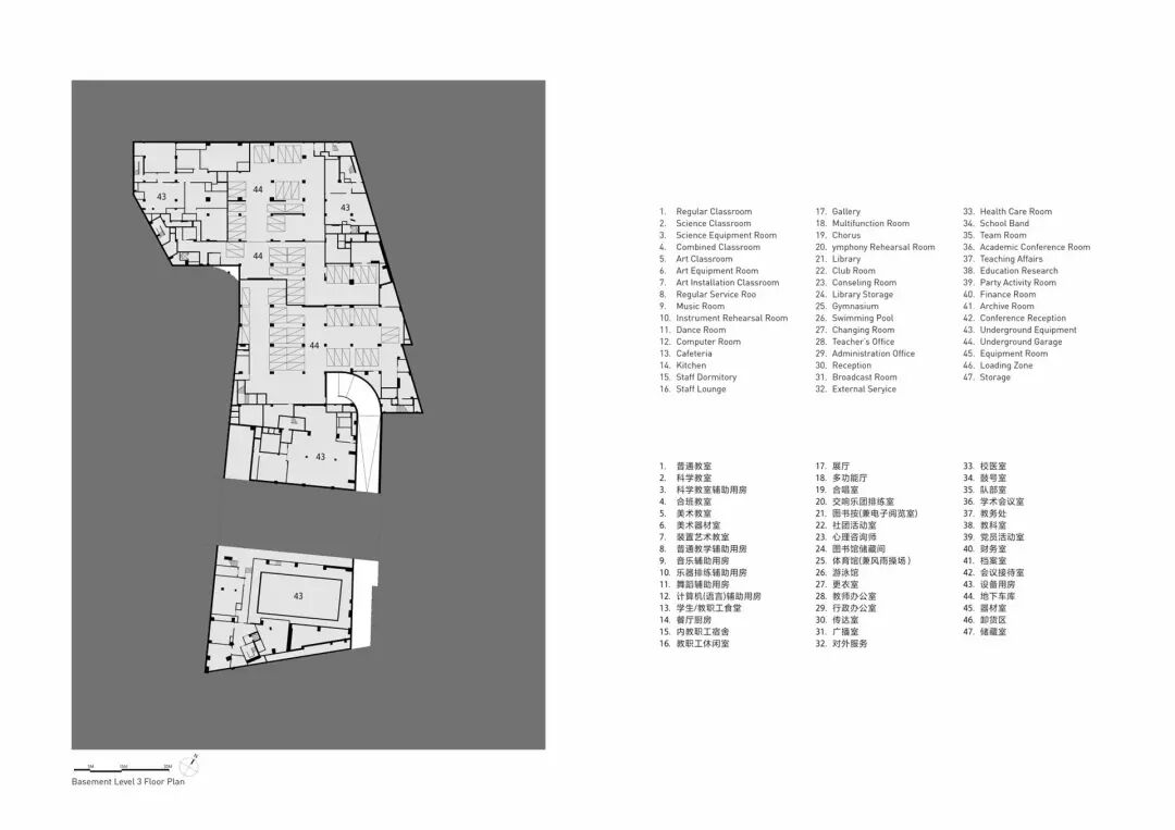 体量与布局翠竹学校的项目布局、体量和公民空间策略都被精心地联系在一起,以最大限度地发挥彼此之间的潜力。程序条从一个基本清晰的位置排列。常规教室、特殊教室和办公室的布置是为了清晰和邻近,并根据场地的特点和期望的构成目标进行调整。