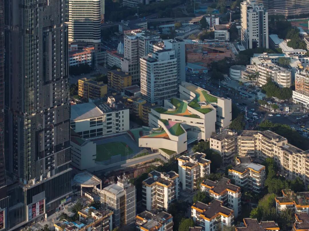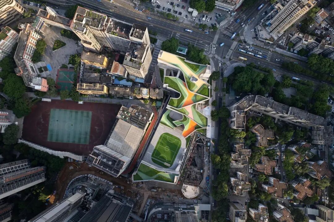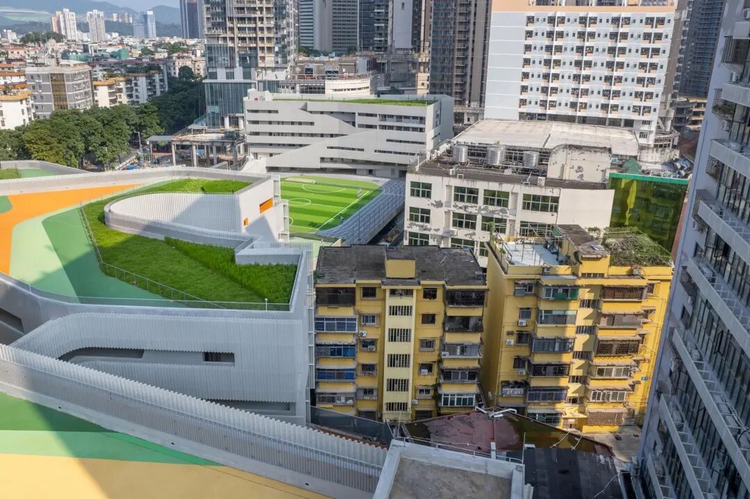 翠竹学校位于深圳历史街区的中心,在高密度的亚热带城市环境中为学校建立了一种新的类型。基于梯田体量,教室松散地坐落在大型公共平台上,形成了一系列阴凉的户外空间,扩展了传统的学习空间。