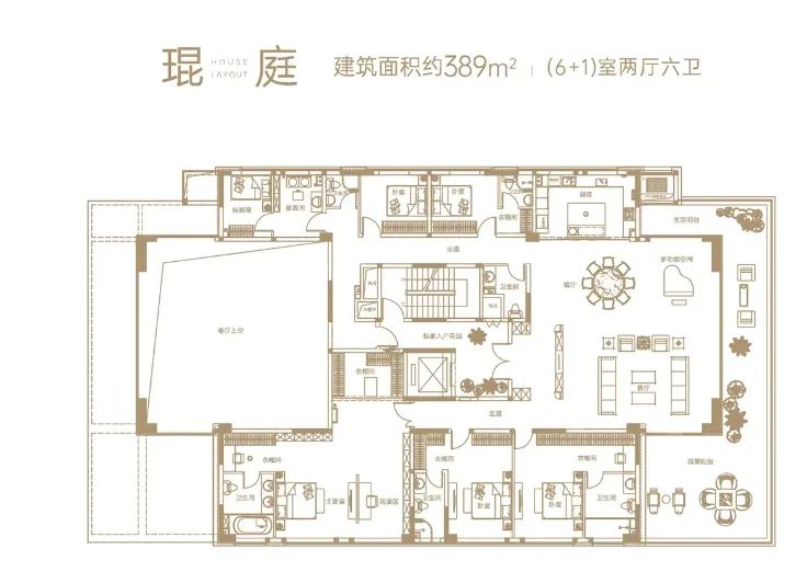 在产品设计上,通过对户型的创新设计、严苛的尺度考究,打造出高端住宅新样本。项目标准层高3.15m,楼王标准层高3.3m,局部挑空6.6m——设置了双层挑高空中庭院,无柱悬挑6.5m,覆土40cm,突破了常规阳台的空间尺度,带给业主超尺度的生活空间享受。