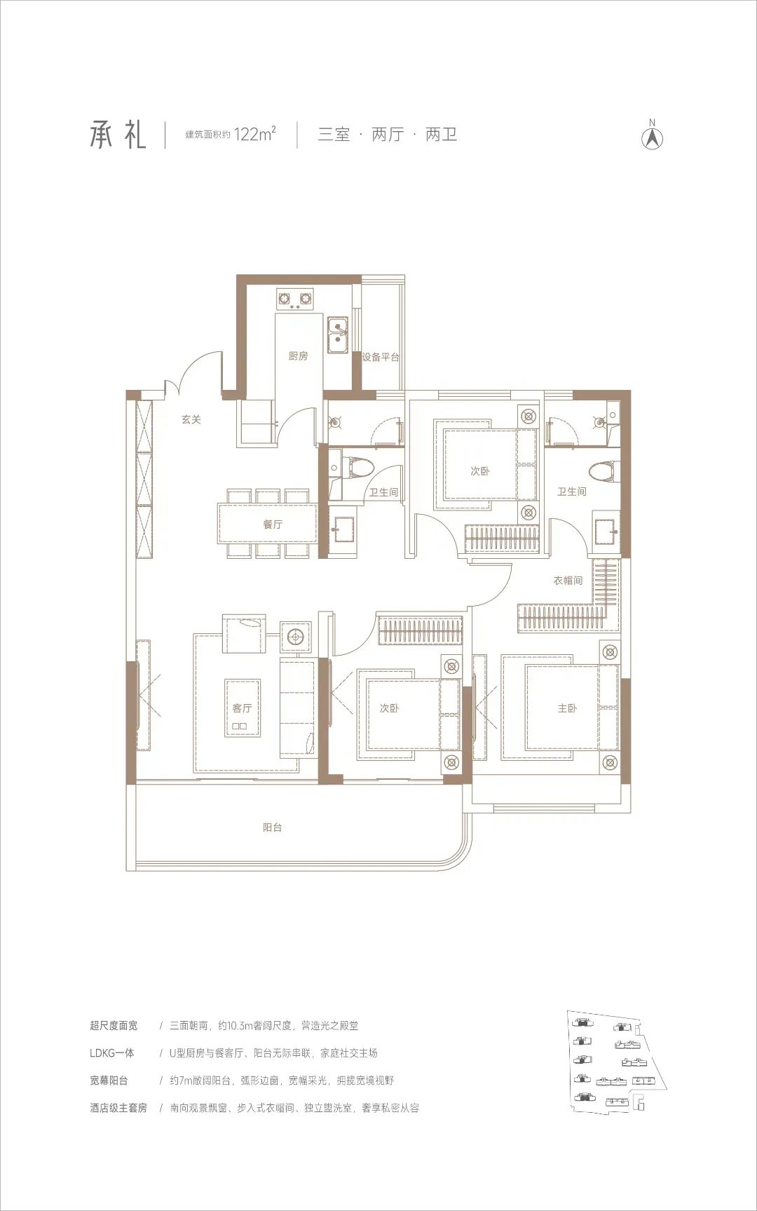 在项目景观视野最好的高层楼栋,户型设计为多面宽超大尺度南向布局,将景观优势最大化展现,提高户型的价值点和竞争力。