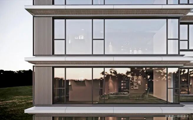 设计细节上,相较于传统建筑的处理方式,其独特的“四感融合”立面匠造工艺,精致感、细腻感十足,让建筑成为艺术。约0.48超大窗墙比,营造出建筑的轻盈、透亮和灵动感,IMAX级全景落地窗+270°转角窗,拉近了室内外的距离,带来宽幕无界的观景视野。