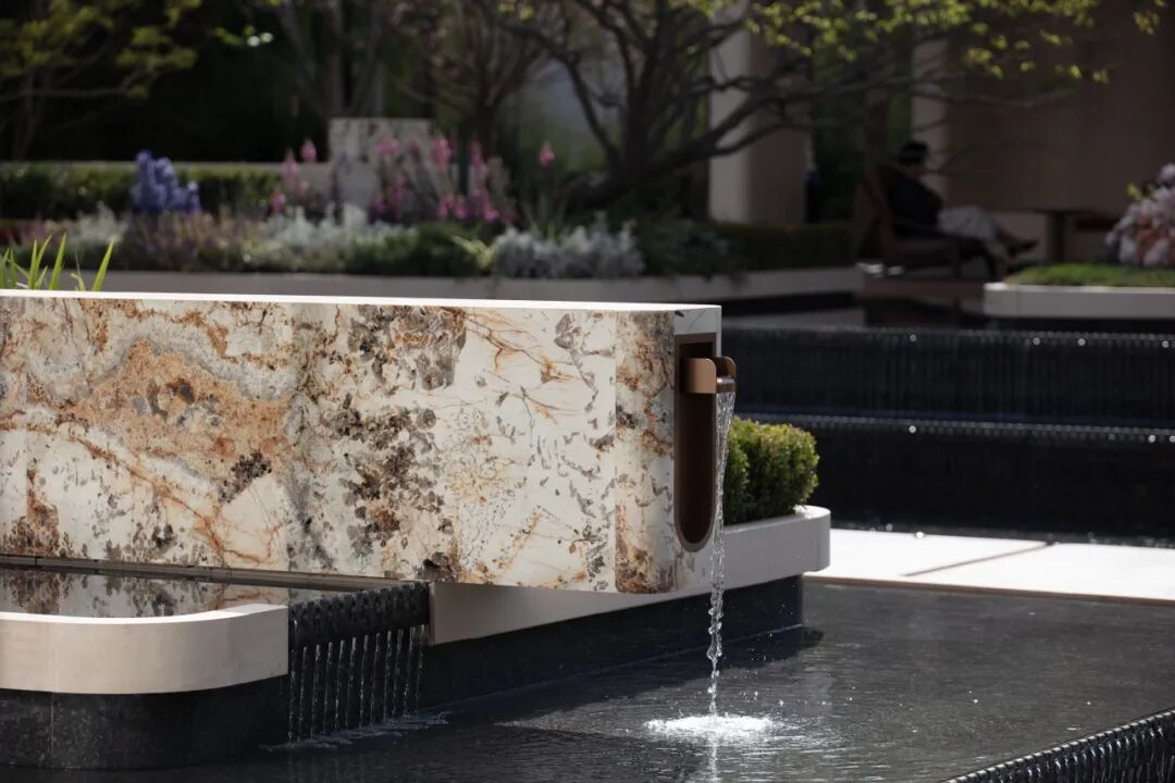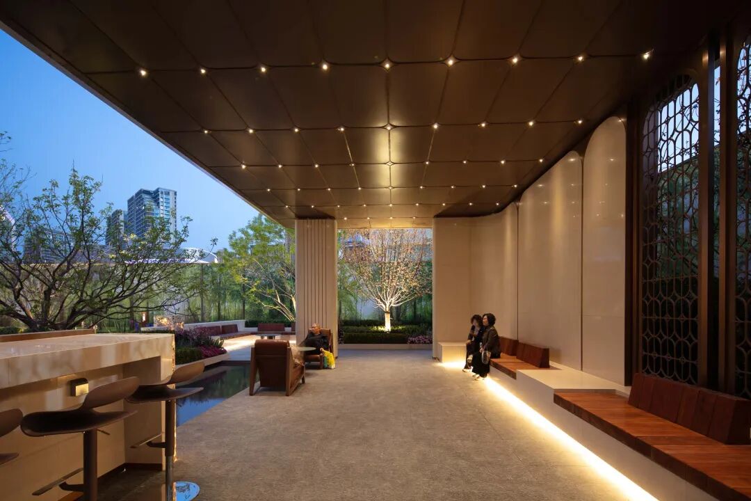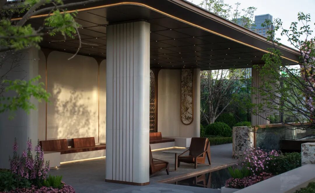 The water flows along the luxurious stone bamboo slips, presenting a landscape scene of "flowing tree shadows and clear sounds entering the water". The heaviness of the ancient slips, the elegance of the luxurious stone and the agility of the waterfalls are integrated into a dialogue of time and space, so that residents can feel the warmth of Lanzhou's cultural context and the innovativeness of modern design as they move from one place to another.