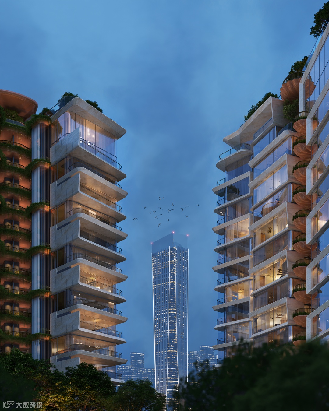 基于业主对差异化创新产品的期待,孟凡浩提出了希望跳脱市面流行的住宅风格体系,在高冷气质的金融城环境中营造一种生态、松弛、有温度的居住体验,也在调研时引起了大家的高度共鸣。回归居住的本质,在都市环境中创造“生态栖居体”,成为了本项目最重要的立意。
