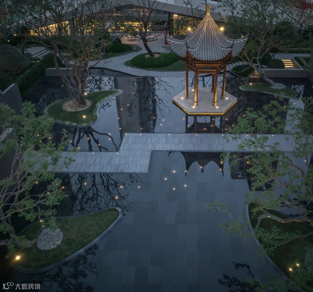 除建筑立面外,金沙·東院各个空间的选材用料均极为考究,几百棵百年名贵树木达到高绿覆盖,营造四季有景的色彩变化效果;曲面异形的园建、台阶、石座凳用条石定制;整石水系驳岸、石桥、水钵、板岩池底铺装,由十几名老石匠历时百日精雕细琢,以细节加码。