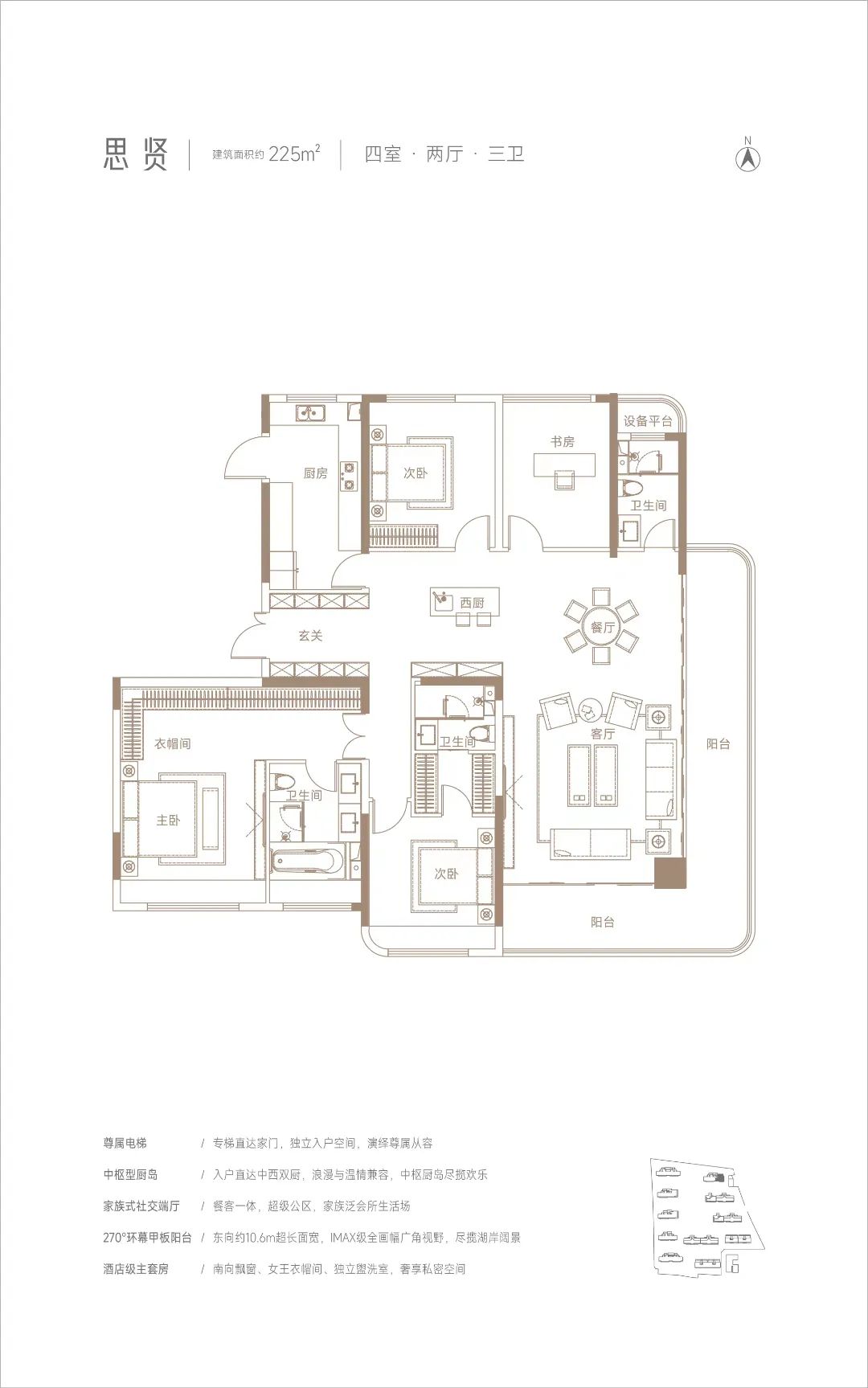 金沙缦岛,融合四代住宅元素,现代“流线型”立面,沿用弧形设计、Y字形弧边线脚,呈现形成错落有致的天际线。大画幅通透玻璃,高达约42%的超奢窗墙比,让生活每一面皆光照面。