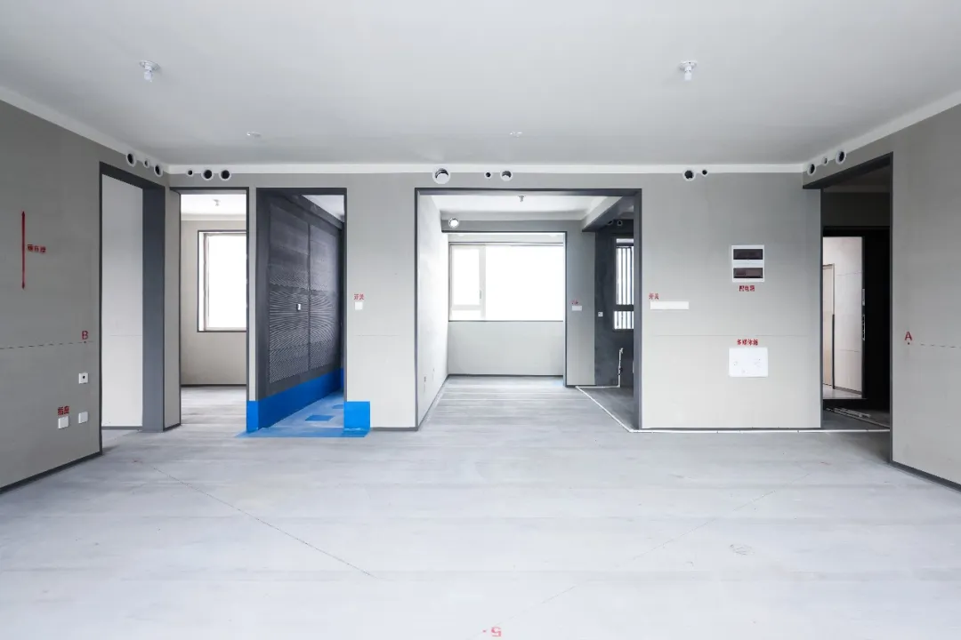 墙体粉刷甚至达到直接可装修水平,堪比简装批白效果,墙面提前进行拉毛处理,减少业主装修前的处理环节,地坪工艺采用精确测量平整度全过程验收;甚至还开展交付预处理,用专业设备将地板打磨粗糙,增加装修贴砖时的附着力……