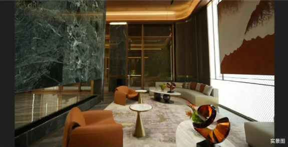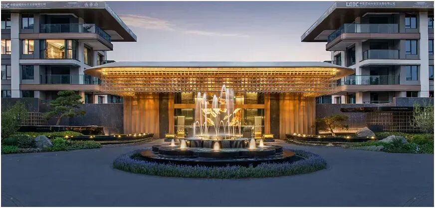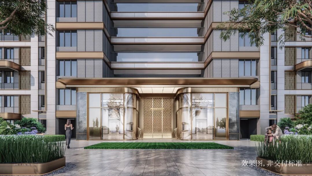 入口作为主界面,兼具了社区配套功能,约6米挑高的封面级门庭设计,傲然挺立,以极简线条与质感金属打造精工奢华感,板块“边界感”愈加清晰,双排水景拉开排面,中间跌水喷涌,衬托鎏金建筑屋檐。