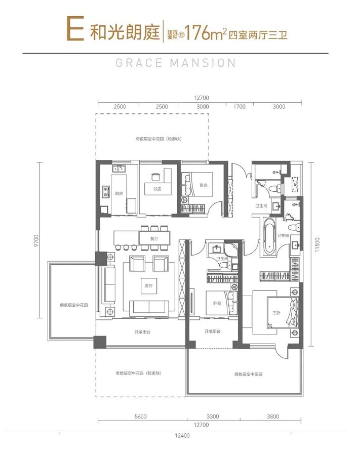 保利天珺打造的创意户型,涵盖建面约143-186平方米的空中院馆产品。