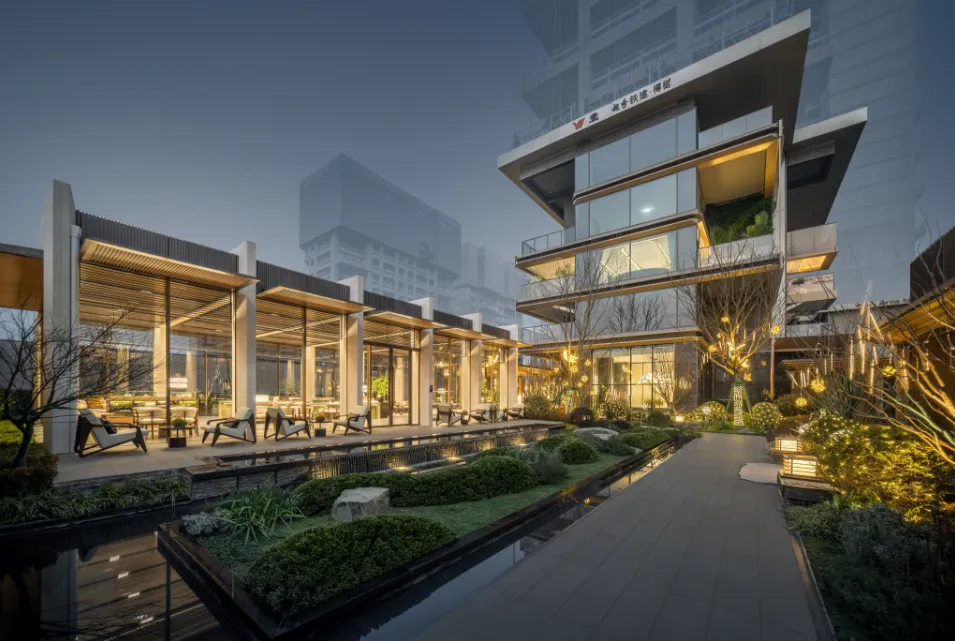 项目这套“归家体系”,于地面空间来说,将原本相对独立的下沉庭院打开,不再是孤立在地下,反而与之交融在一起,真正形成立体化设计;于地下空间来说,改变了原有枯燥单调的归家体验,将景观资源引入地下,让地下车库与地下大堂多了一份自然生气。
