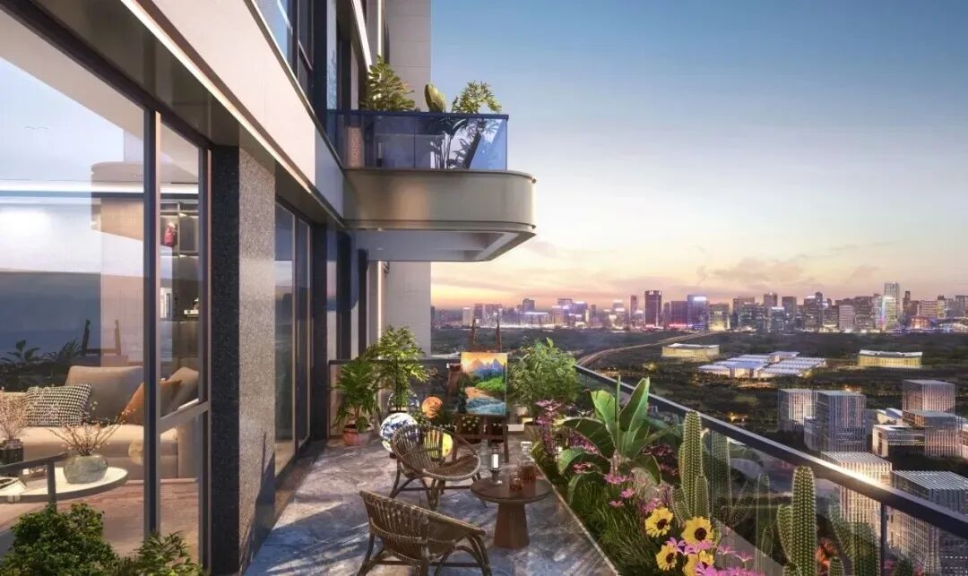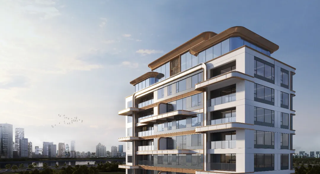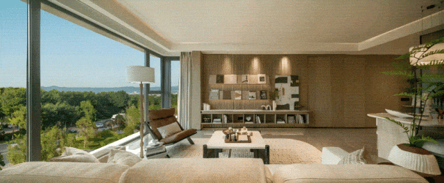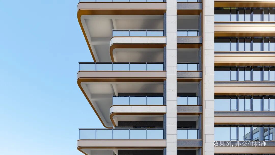 项目采用湾流镜面曲线的立面设计,通过自然造物的弧线美学与光影器物得相融合;每户超大南向阳台向外衔接通高约6-6.2米延伸空间,恰如一艘停靠在安静港湾的游艇,随时驶入更广阔更高处的自由之境。